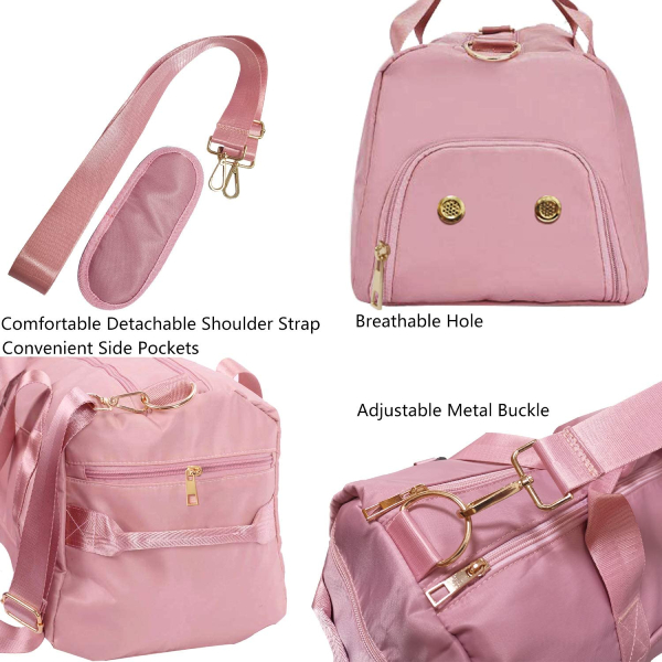 • OUR COMMITMENT: More durable material, the strap is reinforced several layers at the interface for greater load-bearing capacity. We are confident about the quality of this Pink Gym Bag. If you are not satisfied with the quality, please feel free to CONTACT US. We will give you a satisfactory solution.