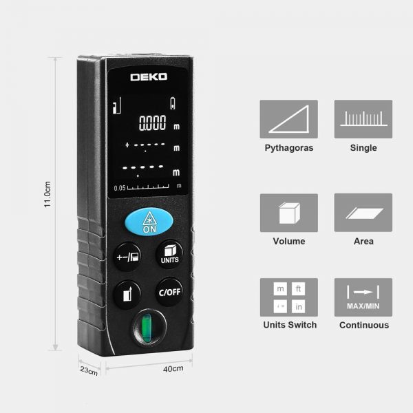 DEKO LRD110 Handheld Laser Distance Meter 40M 60M 80M 100M Mini Laser Rangefinder Laser Tape Range Finder Diastimeter Measure Detail