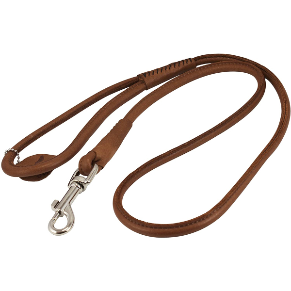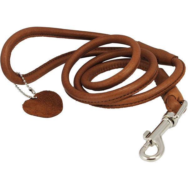 Round Genuine Rolled Leather Dog Leash 4′ Long 1/2″ Wide Brown for Medium Breeds
